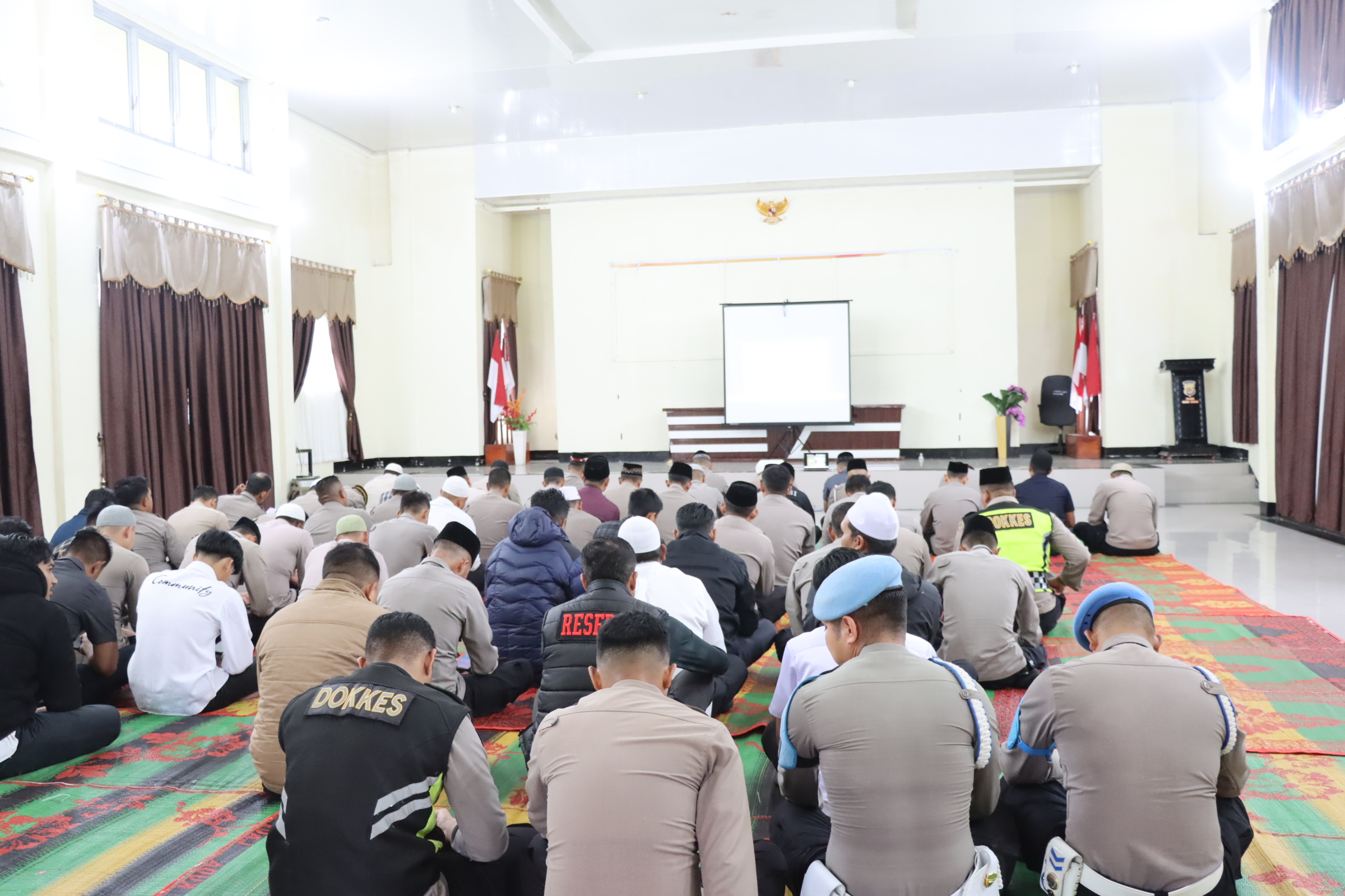 Acara Binrohtal diawali dengan pembacaan surat Yasin, dilanjutkan doa bersama, dan tausiah yang disampaikan oleh Ustad Hairul Razikin. Dalam tausiahnya, beliau mengingatkan pentingnya menjaga keikhlasan dalam bekerja dan memperkuat nilai-nilai spiritual sebagai pondasi dalam menjalankan tugas kepolisian.