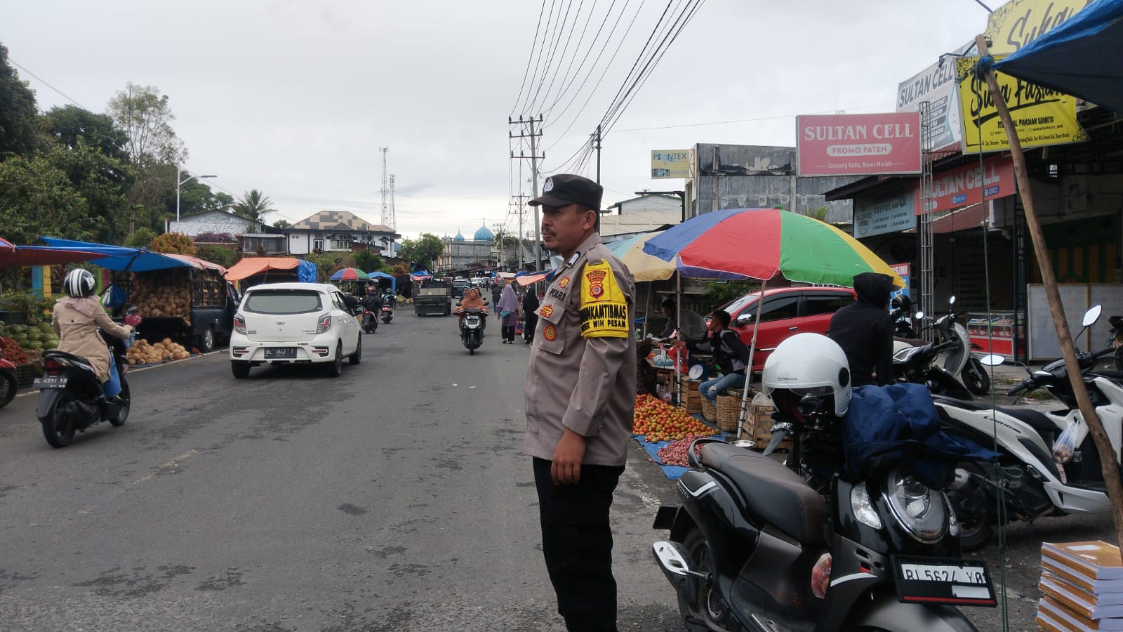 Bener Meriah – Personel Polsek Wih Pesam Polres Bener Meriah melaksanakan kegiatan strong point atau pengaturan lalu lintas di sekitar pasar tumpah Kampung Bener Mulie, Kecamatan Wih Pesam, Minggu (26/10/2025) pagi.