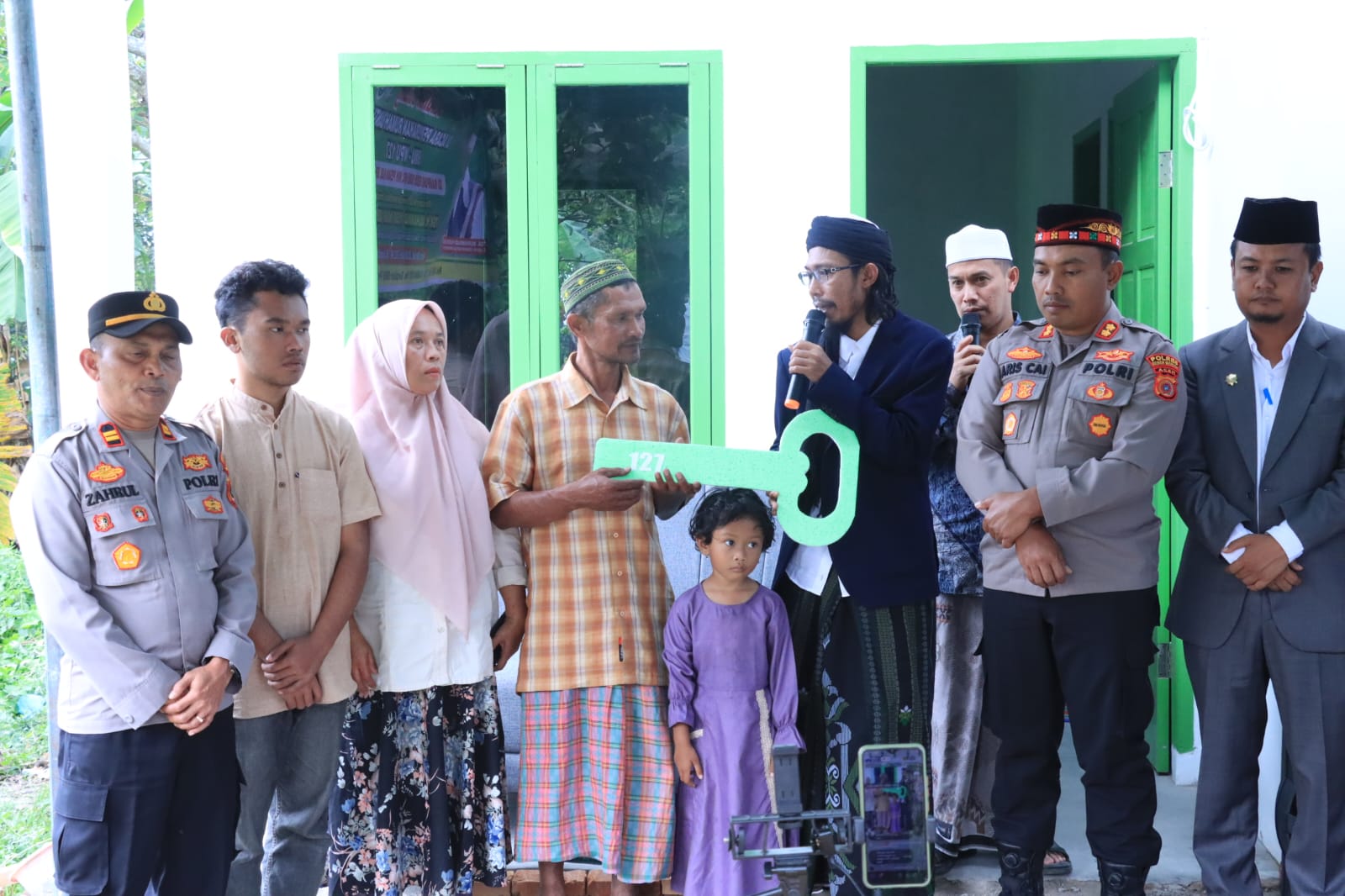 Bener Meriah – Kapolres Bener Meriah AKBP Aris Cai Dwi Susanto, S.I.K., M.I.K., bersama Ketua Umum Barisan Muda Ummat (BMU) Tgk. H. Muhammad Yusuf Nasir atau yang akrab disapa Abiya Jeunieb, menghadiri kegiatan penyerahan rumah bantuan BMU-WPU ke-127 di Kampung Kebun Baru, Kecamatan Wih Pesam, Kabupaten Bener Meriah, Selasa (28/10/2025) sore.