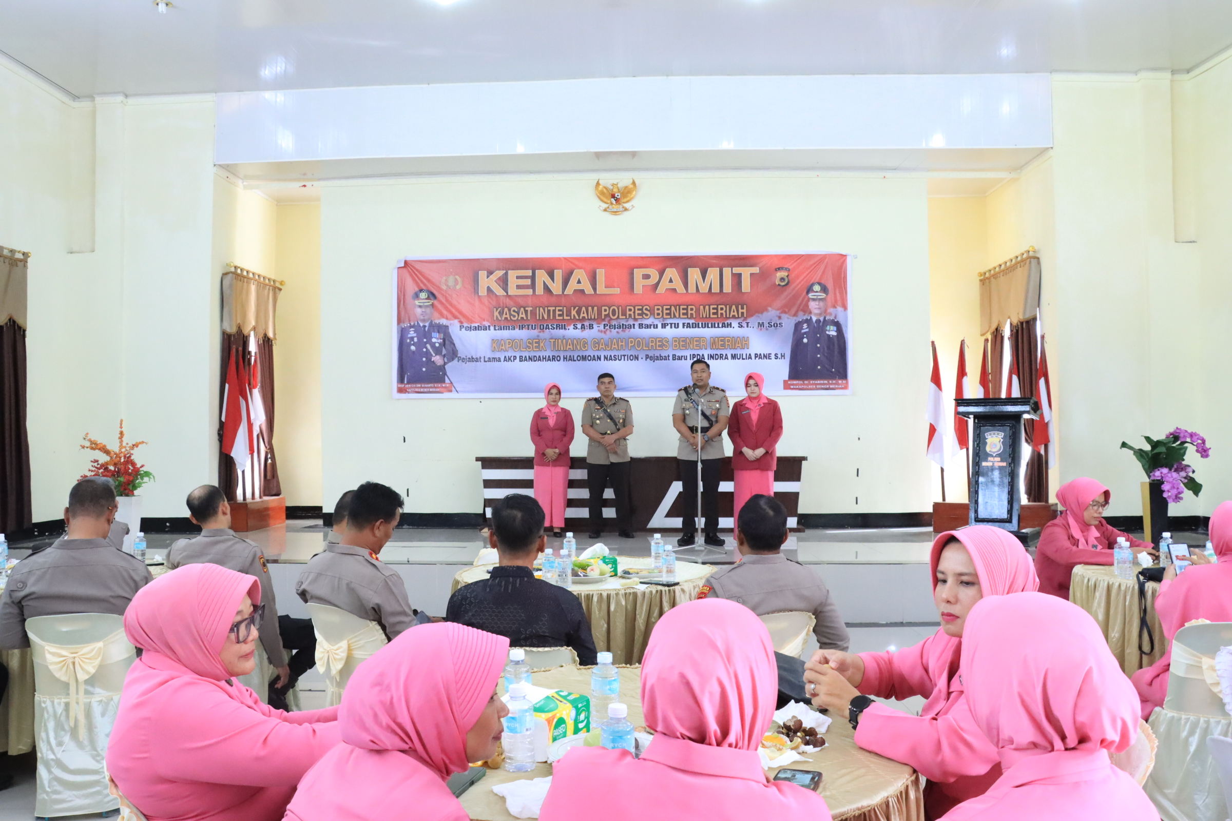 Bener Meriah – Kapolres Bener Meriah, AKBP Aris Cai Dwi Susanto, S.I.K., M.I.K., memimpin langsung acara Kenal Pamit Kasat Intelkam dan Kapolsek Timang Gajah yang berlangsung di Aula Polres Bener Meriah pada Senin (3/11/2025).