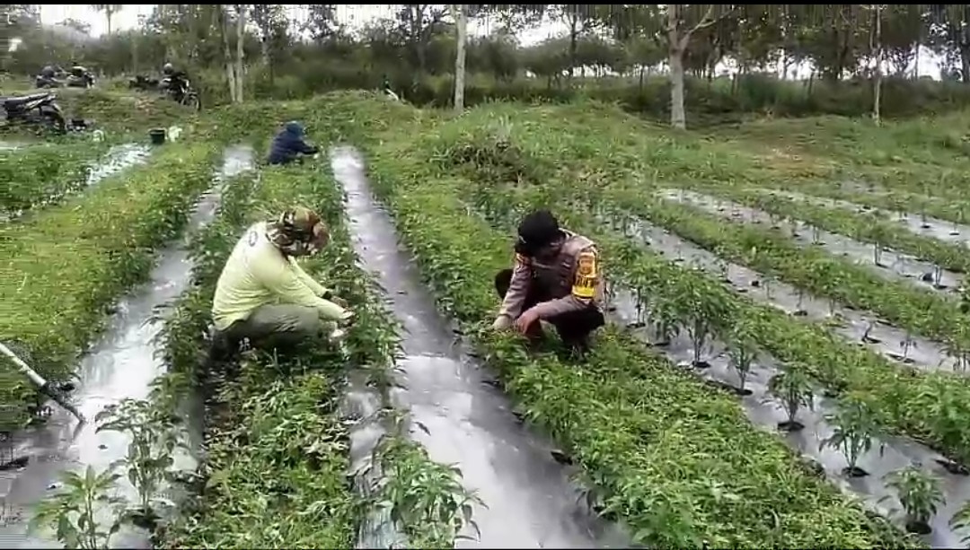 Redelong – Polsek Timang Gajah Polres Bener Meriah melaksanakan kegiatan inventarisasi dan pendataan lahan perkarangan pangan bergizi milik warga di Kampung Umah Besi, Kecamatan Timang Gajah, Sabtu (15/11/2025). Kegiatan ini berfokus pada pendataan lahan yang telah dimanfaatkan untuk penanaman komoditas bawang serta rencana perluasan penanaman tanaman pangan lainnya.