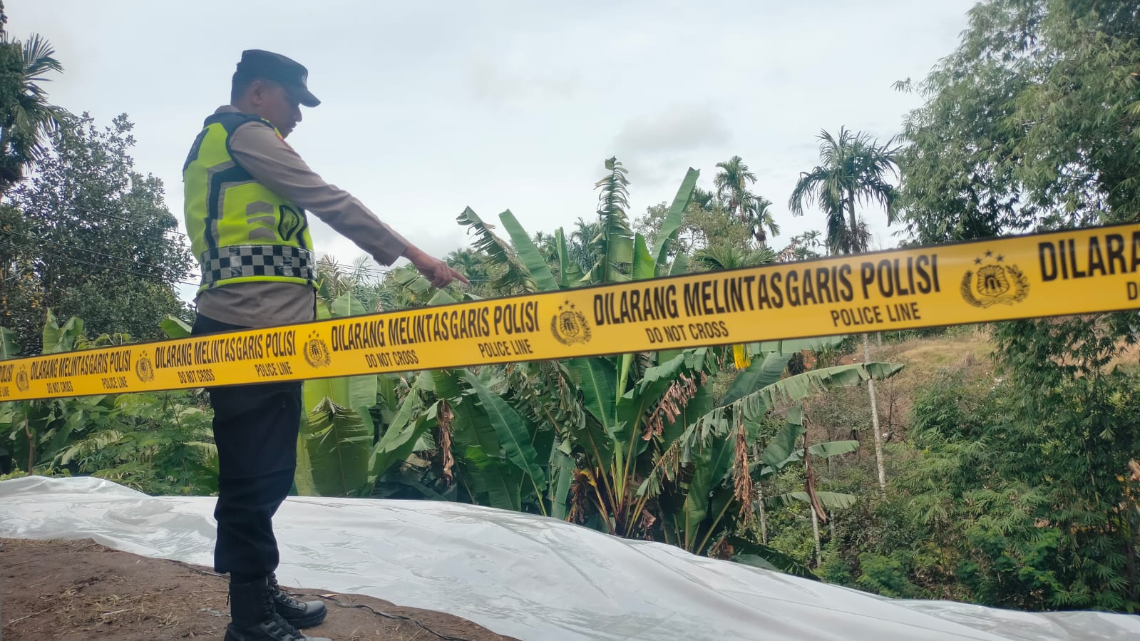 Menerima laporan bencana, personel kepolisian langsung menuju lokasi untuk melakukan pengecekan, memastikan tidak ada warga terdampak, serta mengamankan area rawan. Polisi kemudian memasang police line di sekitar lokasi longsor untuk mencegah masyarakat mendekat dan menghindari risiko longsor susulan.