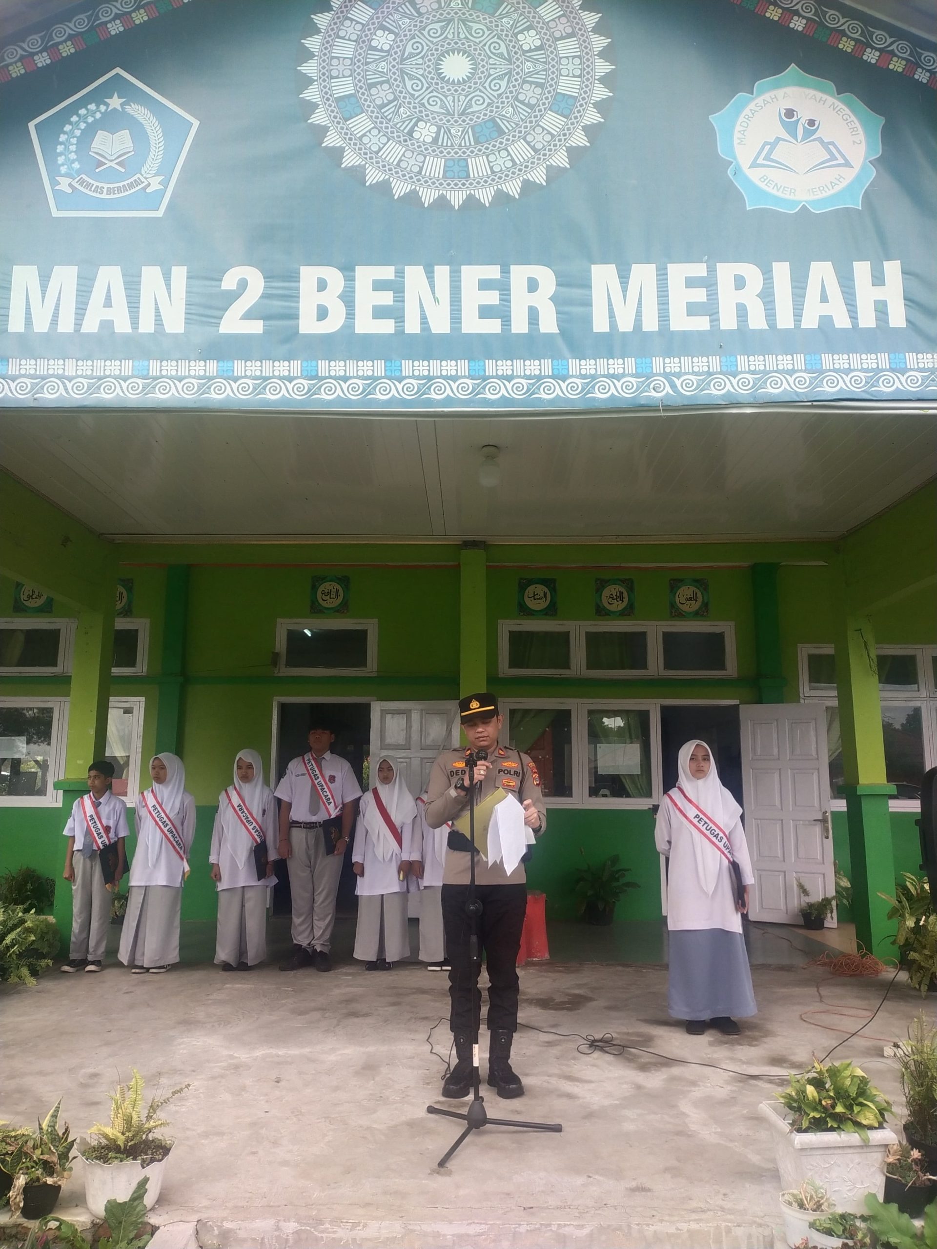 Kegiatan yang dimulai sekira pukul 08.00 WIB tersebut turut dihadiri Kepala Sekolah MAN 2 Bener Meriah Zaini Maktum, S.Ag., M.A., personel Polsek Bandar, dewan guru, serta seluruh siswa-siswi MAN 2 Bener Meriah.