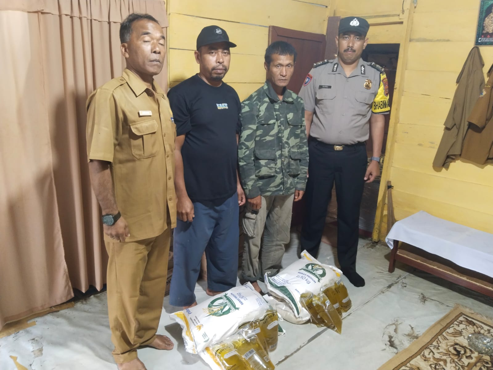 Bhabinkamtibmas Pantau Penyaluran Beras dan Sembako di Tiga Kampung Kecamatan Pintu Rime Gayo