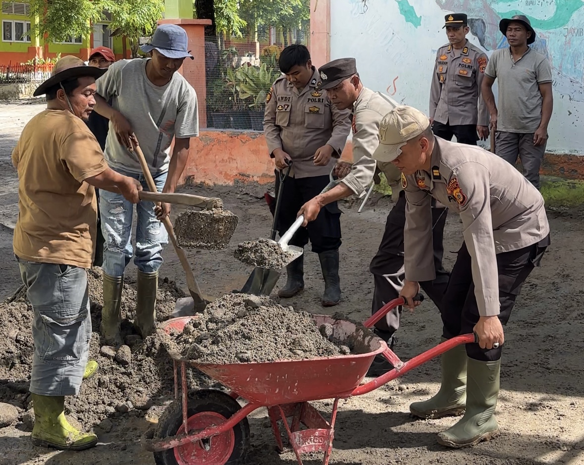 “Kami bergerak setiap hari melaksanakan aksi bakti sosial, bergotong royong membersihkan lokasi-lokasi penting seperti masjid, sekolah, serta fasilitas kesehatan,” ungkap AKBP Aris.