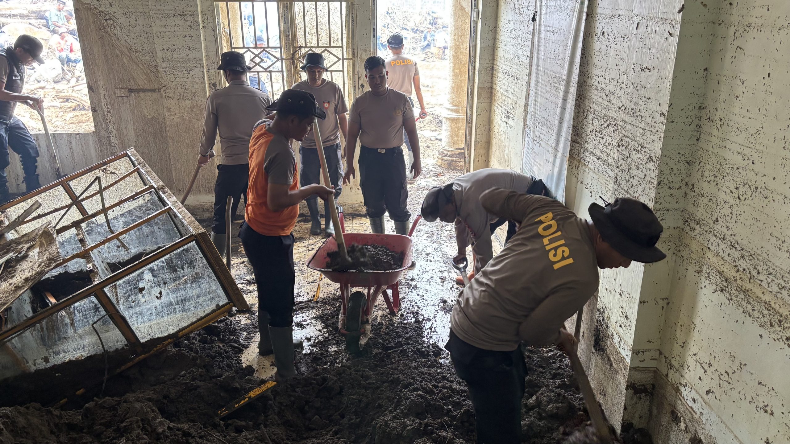 “Kami hadir untuk bergandengan tangan dengan masyarakat, membantu memulihkan fasilitas yang terdampak agar aktivitas sosial dan pendidikan dapat kembali berjalan,” tutur Kapolres.