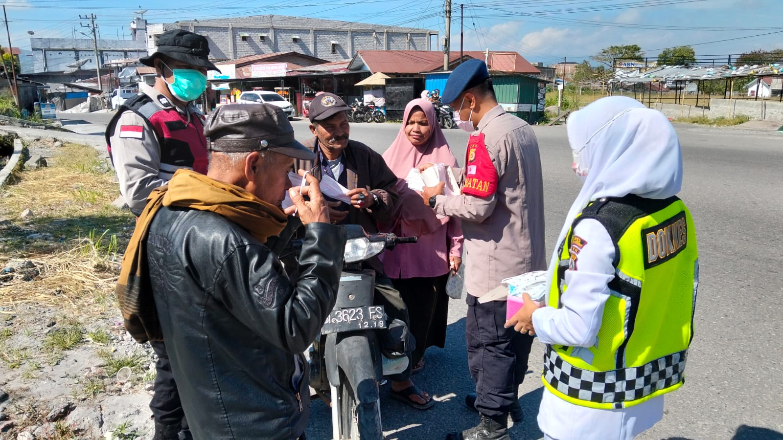 Dalam kegiatan tersebut, personel membagikan 400 lembar masker (8 kotak) kepada masyarakat pengguna jalan sebagai upaya pencegahan paparan debu akibat kondisi jalan pascabencana.