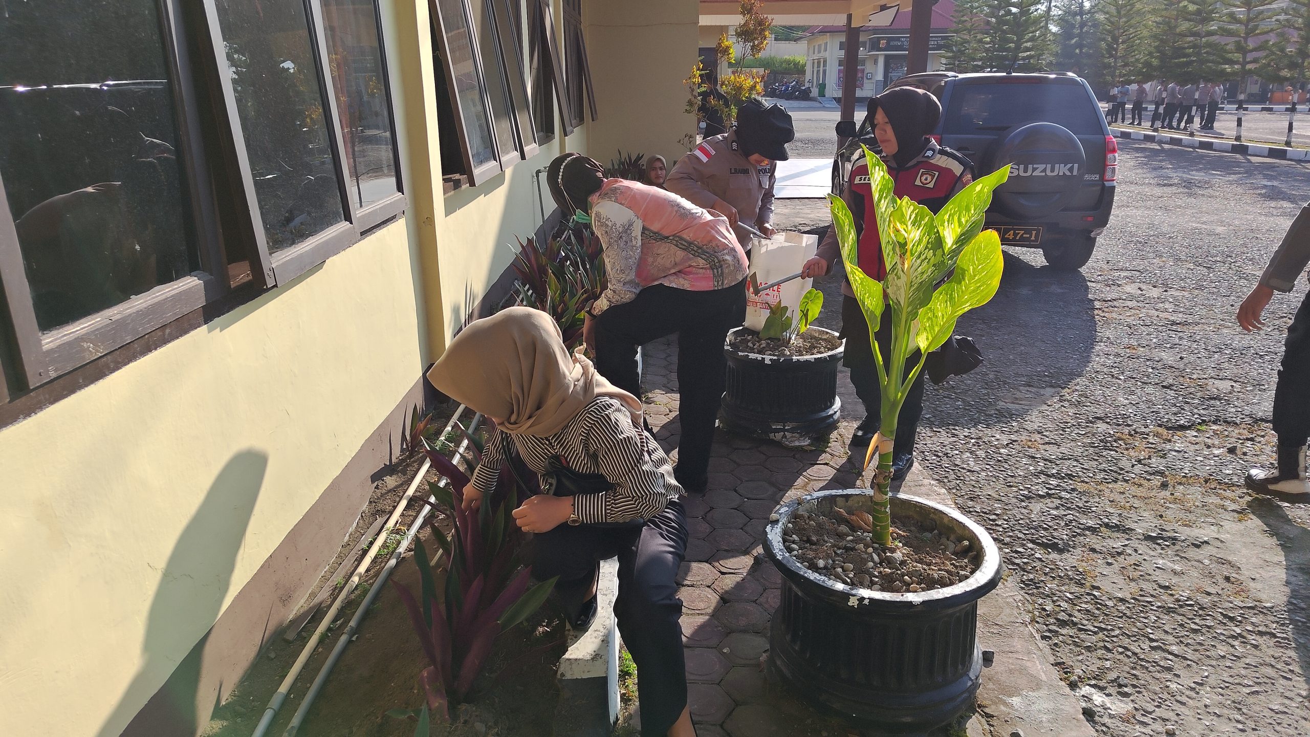 Kasi Humas Ipda Eriadi menyampaikan bahwa kegiatan ini merupakan bentuk kepedulian terhadap kebersihan lingkungan kerja, yang memiliki peran penting dalam menunjang kenyamanan serta meningkatkan semangat personel dalam melaksanakan tugas pelayanan kepada masyarakat.
