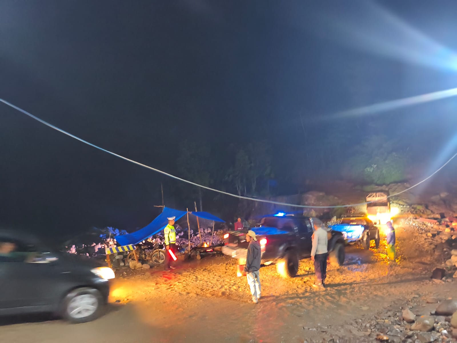 Personel Pos PAM Simpang Lancang Polres Bener Meriah Laksanakan Pengaturan Lalu Lintas Malam Hari, Antisipasi Kemacetan di Jalur Bireuen–Takengon
