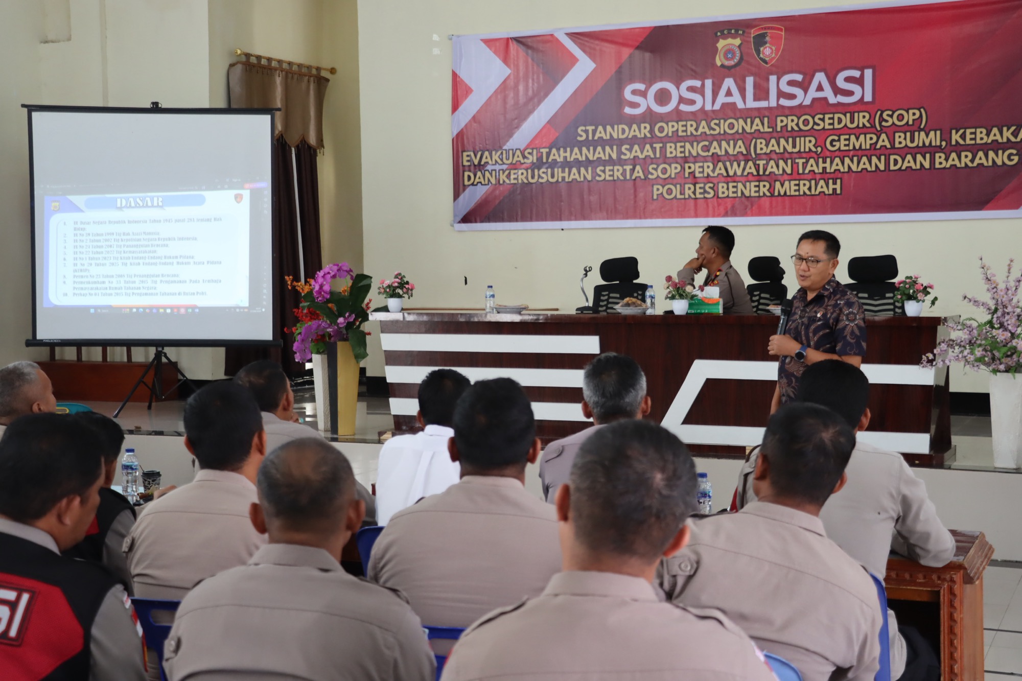 Kegiatan yang berlangsung sekira pukul 10.30 WIB di Aula Enda Darma Laksana Polres Bener Meriah ini turut membahas SOP perawatan tahanan serta pengelolaan barang bukti guna memastikan keamanan dan keselamatan dalam kondisi darurat.