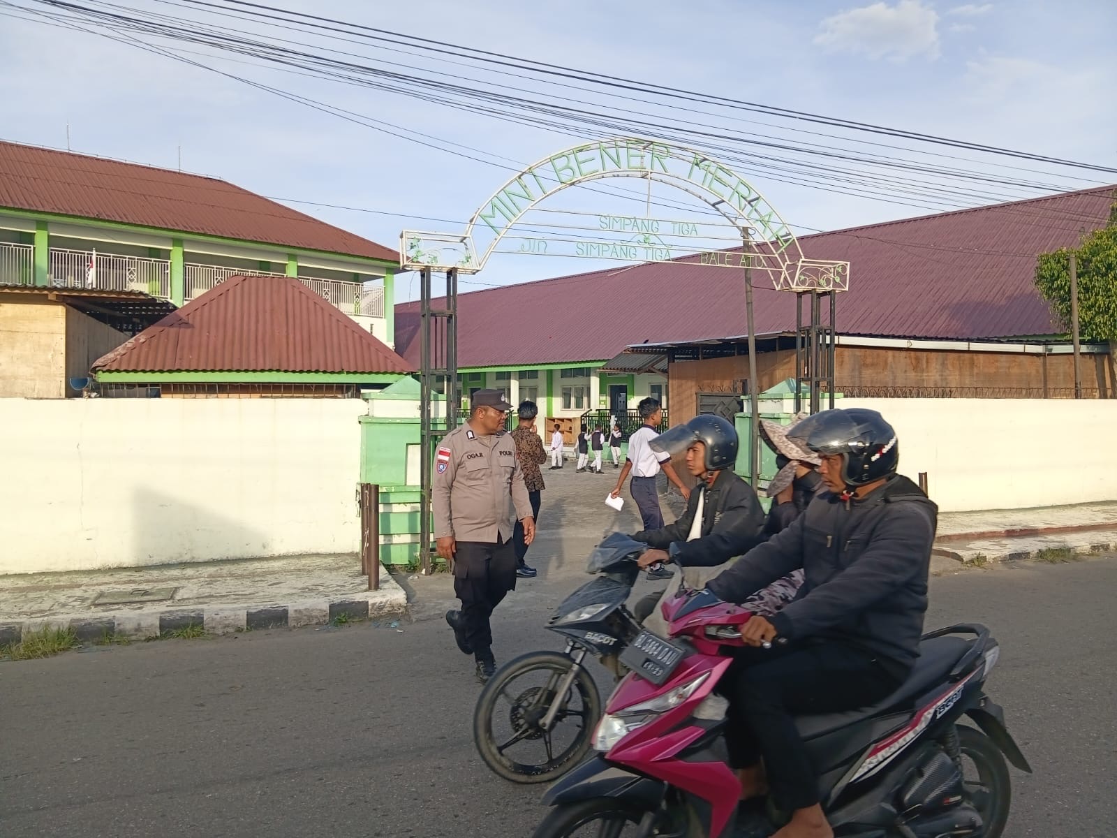 Bener Meriah – Dalam rangka menciptakan kelancaran dan keselamatan berlalu lintas, personel Polsek Bukit melaksanakan kegiatan pengaturan lalu lintas (strong point) pada Selasa pagi (28/04/2026) di depan MIN 1 Bener Meriah, Kecamatan Bukit, Kabupaten Bener Meriah.