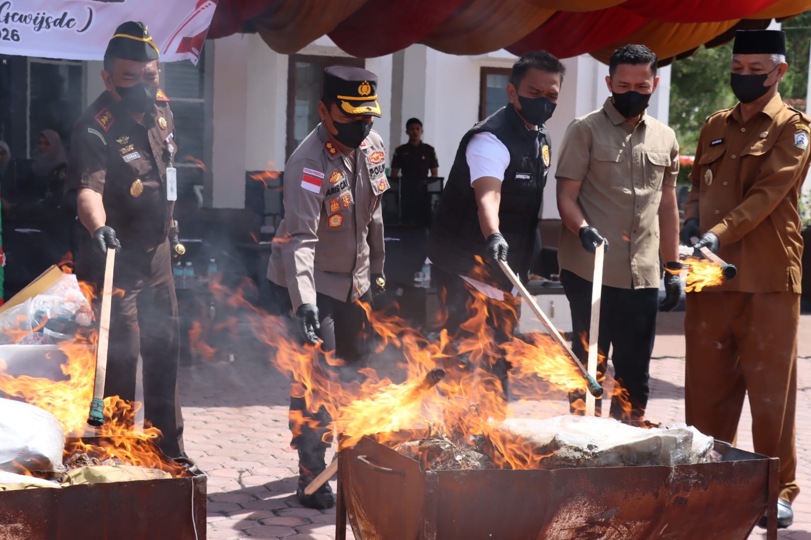 Sinergi Aparat Penegak Hukum, Barang Bukti Perkara Narkoba dan Pidana Umum Dimusnahkan di Bener Meriah
