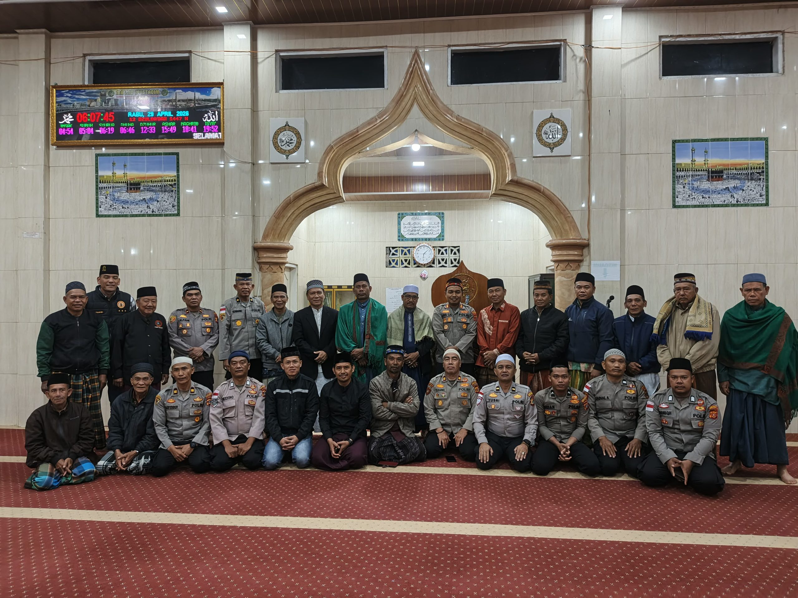 Bener Meriah – Upaya mempererat hubungan antara Polri dan masyarakat terus dilakukan Polres Bener Meriah melalui kegiatan Shalat Subuh Keliling (Suling). Kali ini, kegiatan berlangsung di Masjid Al-Mustaqim, Kampung Pajar Harapan, Kecamatan Timang Gajah, Rabu (29/4/2026).